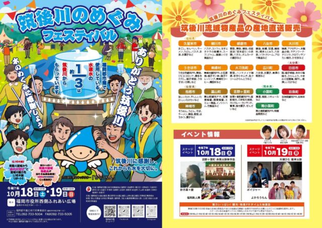 筑後川のめぐみフェスティバル2025は、福岡都市圏と筑後川流域をつなぐ感謝と交流のイベントです。福岡市役所西側ふれあい広場を舞台に、筑後川流域17市町から集まった特産品の販売や、伝統芸能、観光PRステージなど多彩な催しが繰り広げられます。水の大切さを学べる啓発コーナーや、購入者を対象とした抽選会もあり、家族連れで楽しめる内容が満載。福岡の暮らしを支える筑後川の恵みに触れ、地域の魅力を再発見できる2日間です。